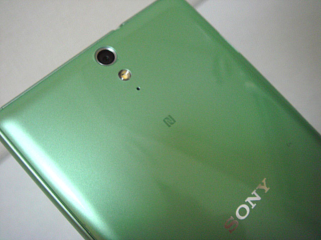 リア部。フロントと同様1,300万画素のリアカメラとLEDフラッシュライト付き。パネルがプラスチックなのが残念。