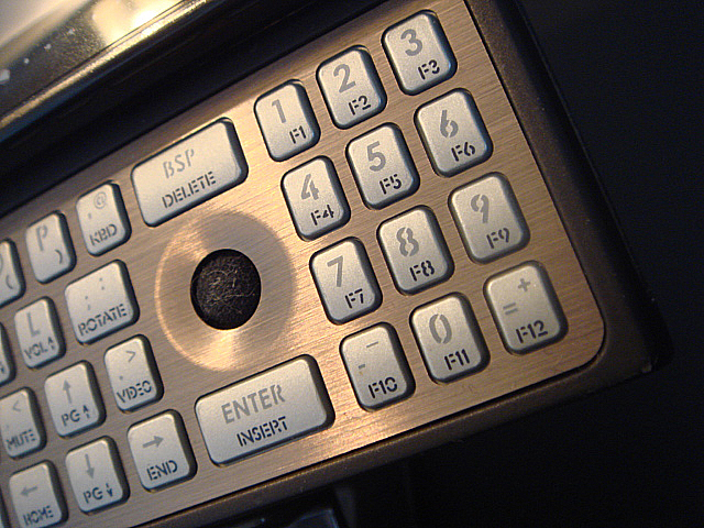 ポインティングデバイスは、右手でスティックの操作、左手でクリックを行うスタイル。