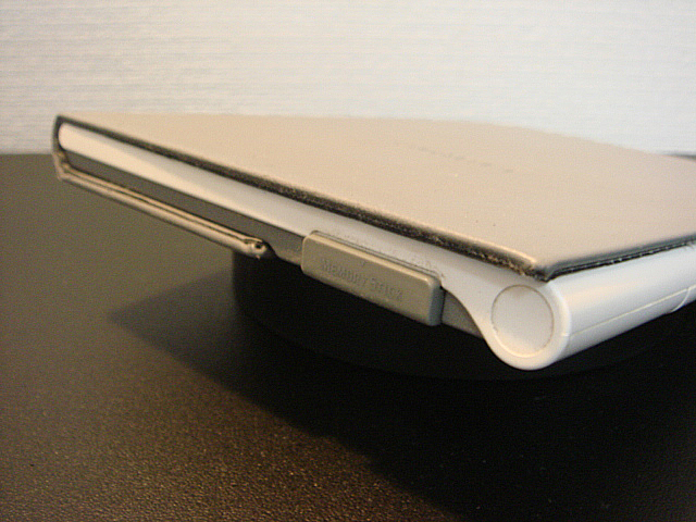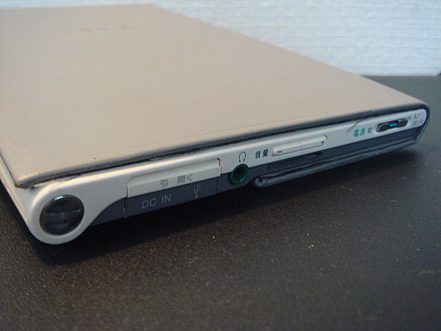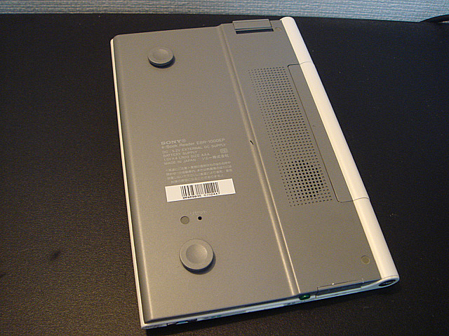 厚さは13mmと当時の電子ブックでは非常に薄い。手前のスロットが記録用メモリースティックDuo。ヒンジ部分はソニーらしいデザイン。
