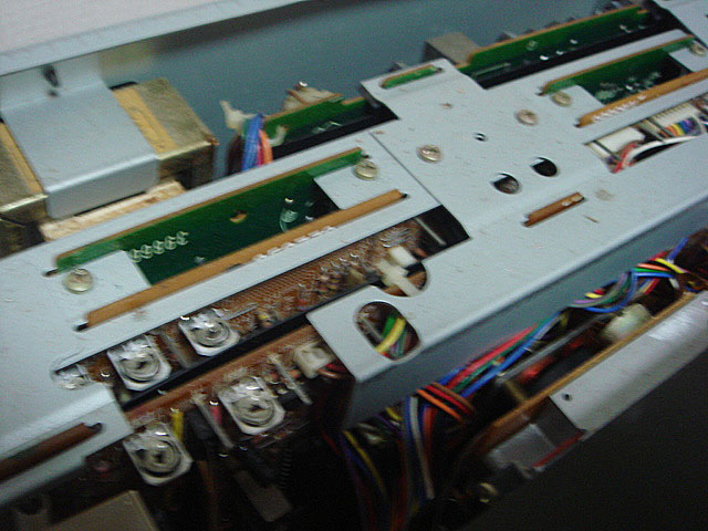 ボンネットを外すと基板部が4層になっています。各基板にはプラスチックのシールドがあり、さらに中央にはスチールのシールドもあるような構造です。