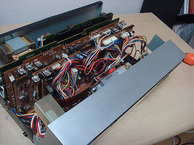4層の基盤が現れました。オーディオ部は後ろ2枚が怪しい。