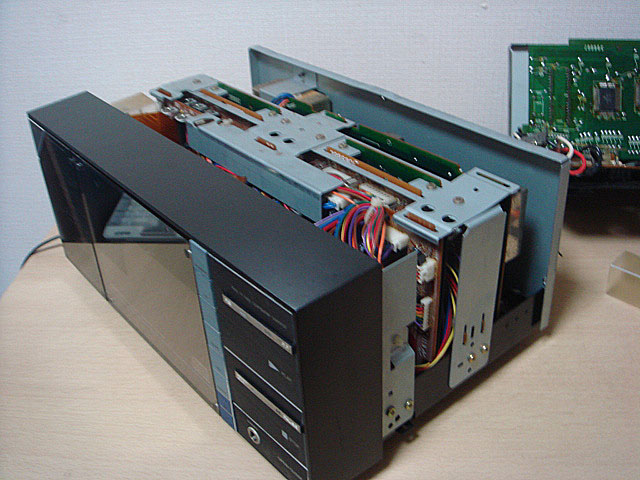 内部もけっしていい状態ではなく、ディスクを入れてみましたが確かにピックアップは動くようですが認識をしない状態。