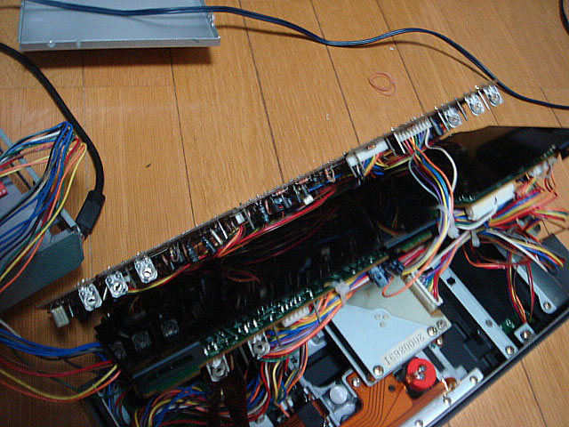 次にフロント部を外します。集積化されていない初号機は配線が複雑に入り組んでいます。