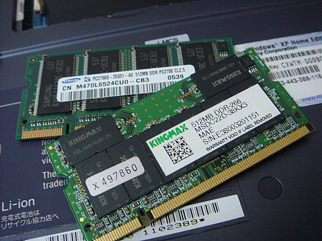 メモリも512M一枚だったので512M×2で1GにしてWindowsをインストール。