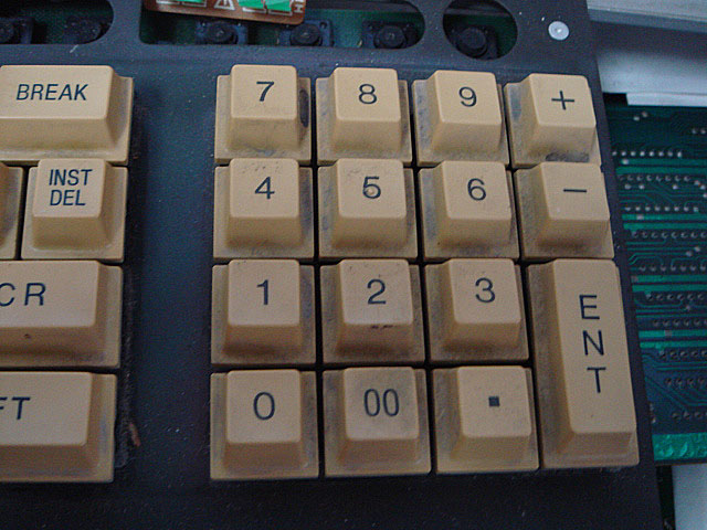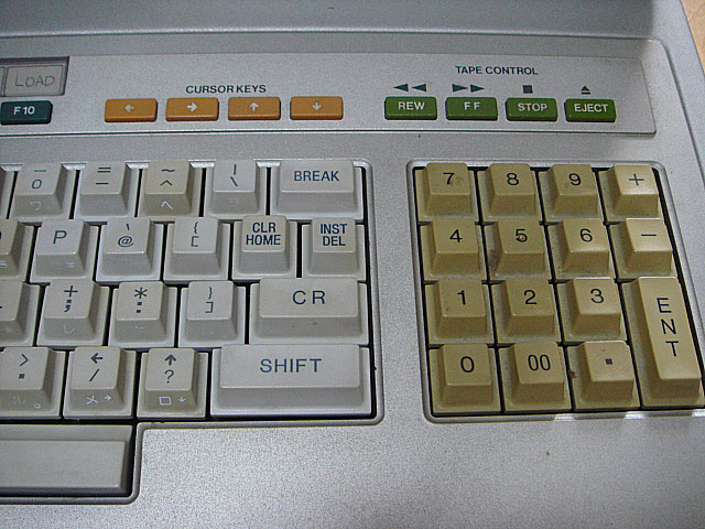 洗浄したキーボードを実家にあるMZ-80Bに装着します。元の状態はなかり黄ばんでいました。