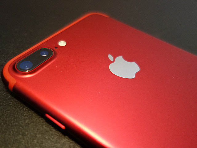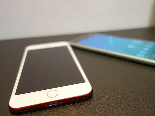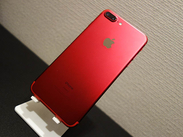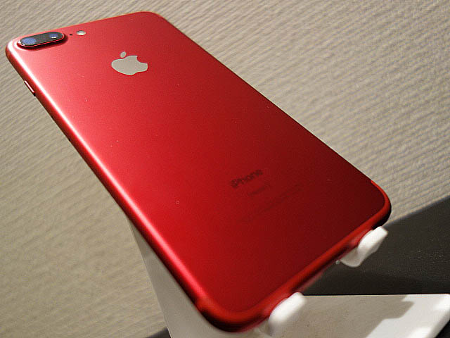 赤色のiPhone7Plus。3月に特別モデルとして発売されたモデル。妻が機種変したものを使用前にいじってみました。