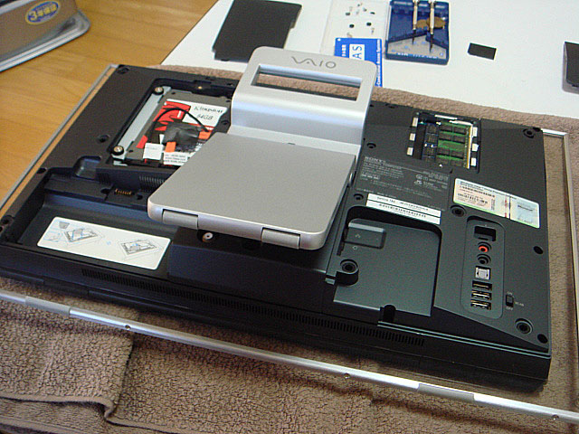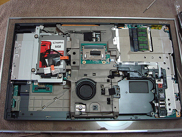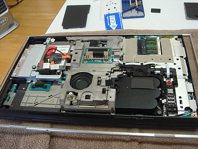 あまりにも遅いのでCPUをCore2Duo T8100(2.1GHz)にHDDをSSD、メモリは上限4GBを購入して実用レベルになるのかテストしてみました。背部のカバーを外していきます。