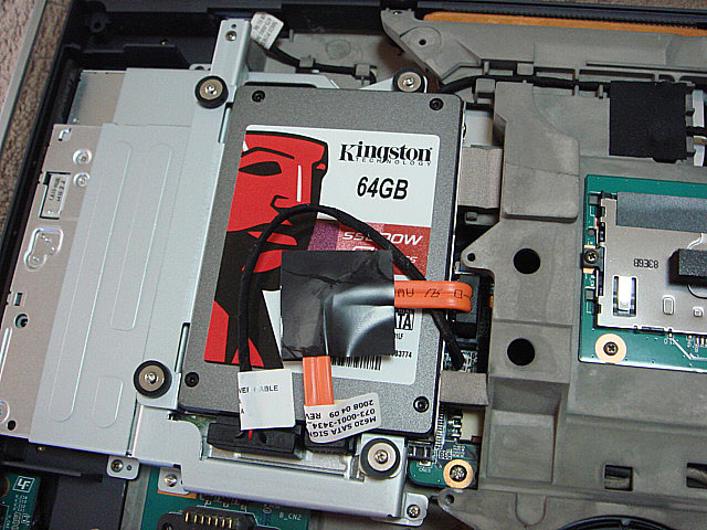 背部のカバーを外すと左側にHDDがあり、SSDと入れ替えます。