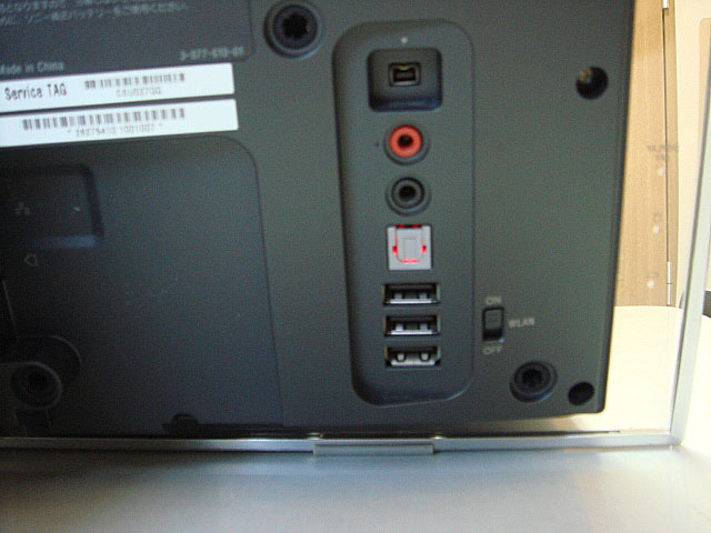背部の端子。オプティカル出力もありAVアンプとも接続が可能。