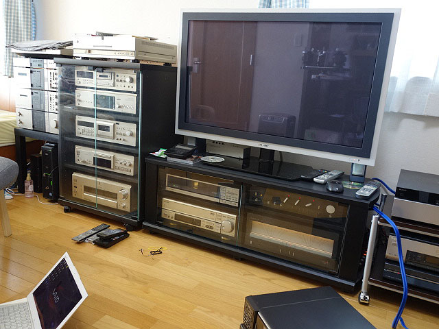 子供二人が大学生で出て行ってしまったので12畳ほどの部屋に一線を退いたデバイス類を設置してあります。