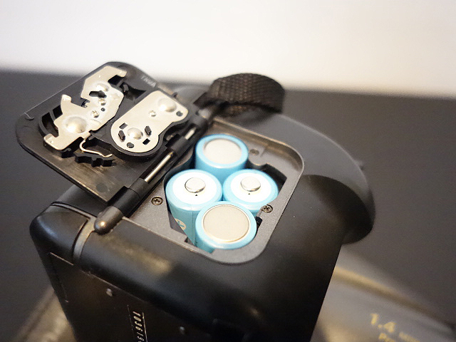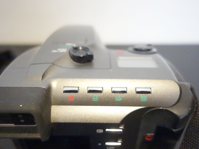 上部の操作系です。右側はコントロールパネルにズームレバー付きシャッターボタン。真ん中に電源ボタンがあります。