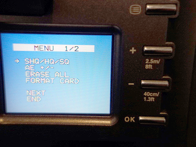 撮影可能枚数:SHQ = 4枚 / HQ = 12枚 / SQ = 49枚(C-1400L,4MB利用時)