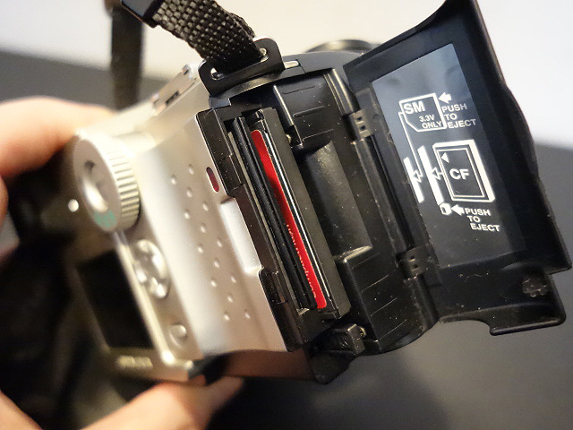 メディアの収納部です。スマートメディアの他にコンパクトフラッシュ(CF)が使用できたことが大きな特徴でした。