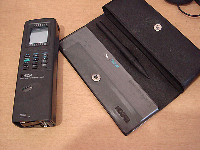 この時代はまだPCによる本格的にワードープロセッサは非常に高価でワープロ専用機が文書作成の主流でした。本機の特徴は液晶画面に専用ペンで手書き(入力)すると内蔵の辞書から単漢字変換(連文節は不可)して文章作成が可能でした。