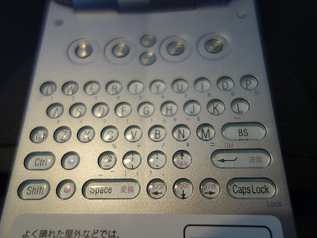 バックライト付きキーボード部。レイアウトが若干変更されており、中央がやはり少しくぼんでいてNZ-90あたりから大分まともになりました。