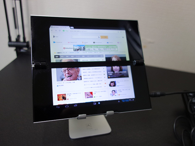 折りたたみ型のクラムシェルボディと2画面液晶が変則的なコンパクトタブレット。