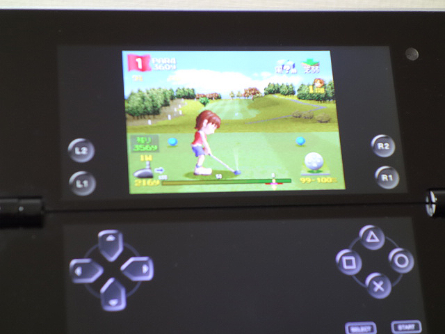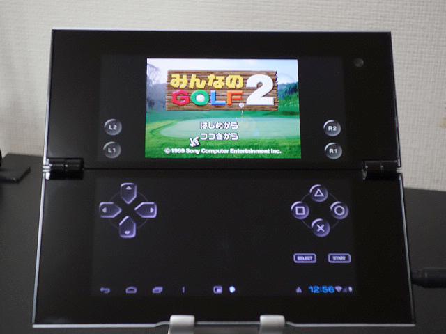 初代PSの「みんなのGOLF 2」「Pinball Heroes」がプリインストールされていて上部にゲーム画面で下部にコントローラーが表示される。