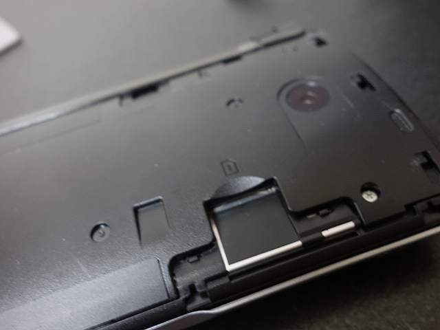 底部はバッテリーが2/3を占め、MicroSDカードスロットもあります。