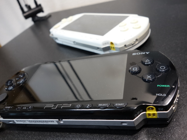 私も初号機(PSP-1000)2台と液晶が高品質化し軽量化されたPSP-3000、新しいコンセプトのPSP-goを所有していました。今回更にジャンク品2台が加わりました。