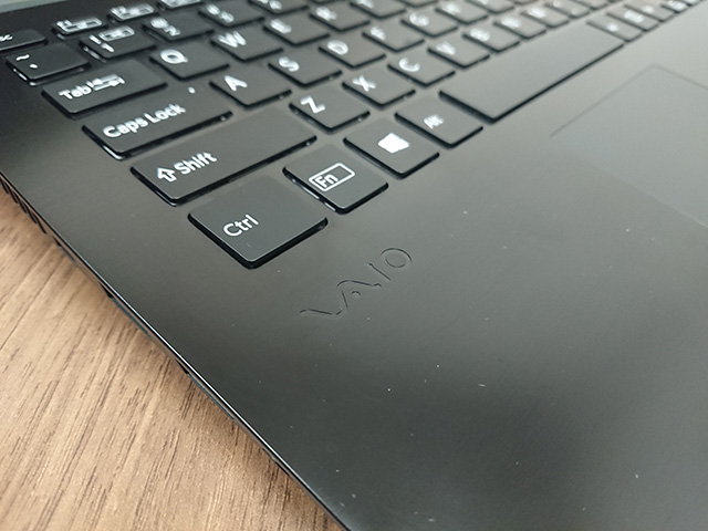 パット部にはVAIOの印字がさりげなく刻まれています。キーストロークもそれなりにありタイピングはし易い。