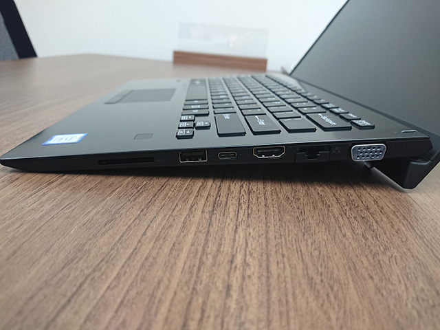 右側。USB 3.1(Gen2)×1、USB Type-C×1、HDMI(1.4)×1、Gigabit Ethernet、ミニD-Sub15ピンと豊富。仕事にはまだまだD-Subがあると便利。