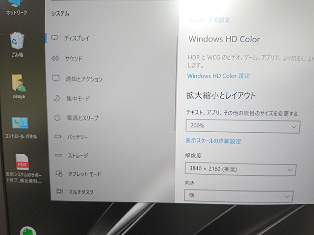 実際は文字サイズを200%まで拡張して使っているためFullHD(1920×1200)で十分です。