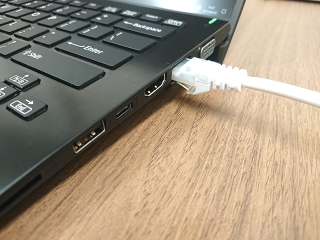 モバイルPCで有線LANがダイレクトに刺せるのも仕事上、非常に便利です。