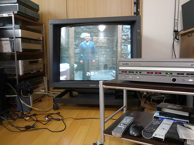 再生環境はブラウン管(PROFEEL PRO KX-34HV2)を使用。レーザーディスクは液晶パネルで鑑賞するよりブラウン管のほうが色の再現性も良く良い映像を出力してくれます。