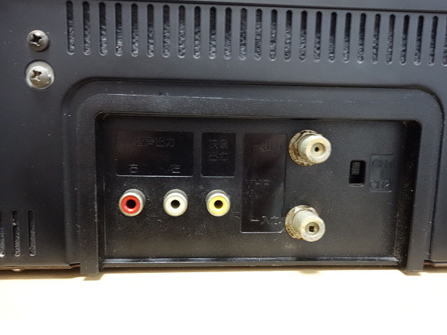 背部はシンプル。映像、音声のピンプラグにVHF入出力用のF型ジャックのみ