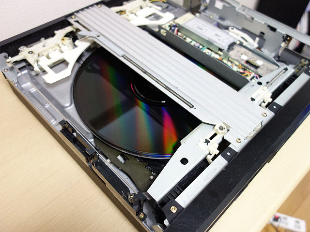 VHD方式はスロットイン式の挿入口にカートリッジを挿入するとディスクだけが内部に装着される仕組みです。
