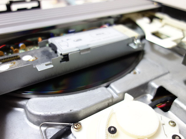 カートリッジを挿入し引き出すと光ディスクが本体のテーブルに設置され、カートリッジだけが取り外されます。