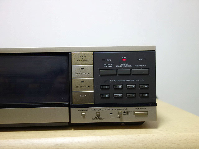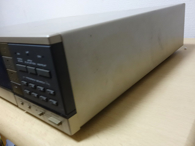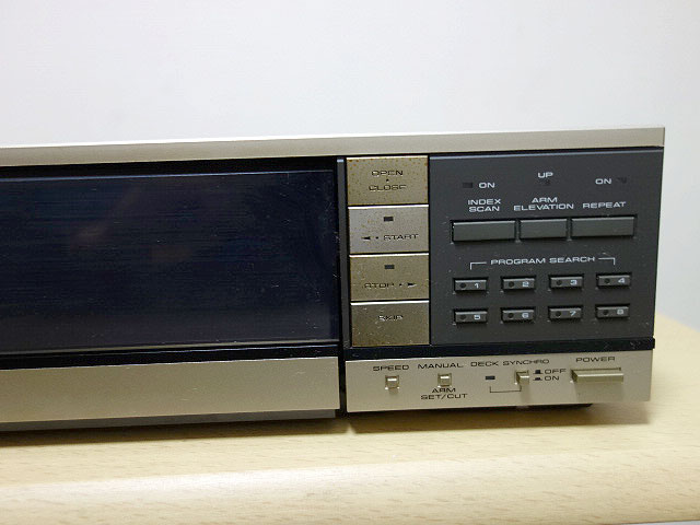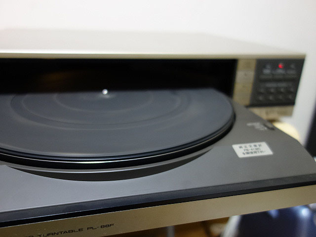 フロントローディングタイプのアナログレコードプレヤーです。(詳細は以前のPL-88FSをみてください。)このタイプはカラーがシルバーのPL-88FSとゴールド色のPL-88Fが存在します。以前からゴールド色を探していてヤフオクで4,100円で以前落札しました。今回まとめて修理をしました。(この写真は修理後です。)