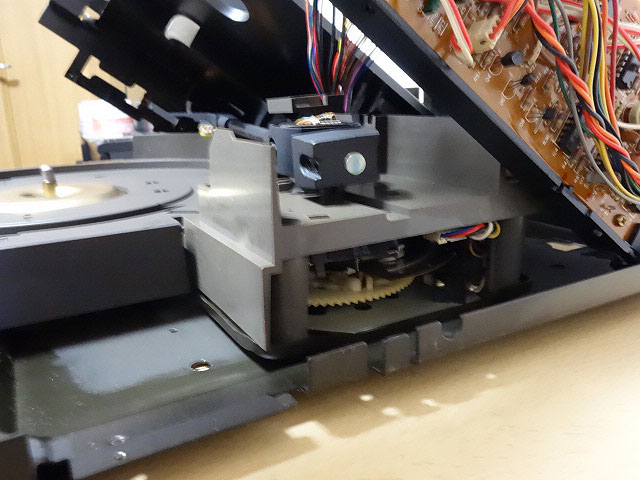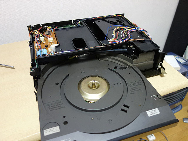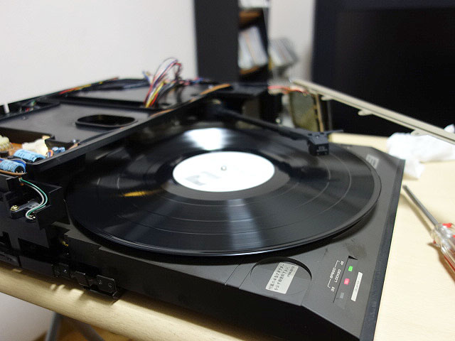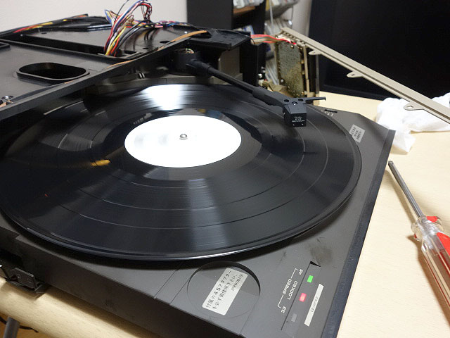 当然のごとくローディングはしません。モーター音はします。ターンテーブルはロックされていました。