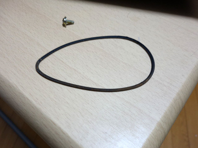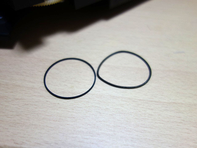 オリジナルのゴムベルト。弾力性はかなり落ちている様子。同じサイズのゴムベルトに入れ替えました。