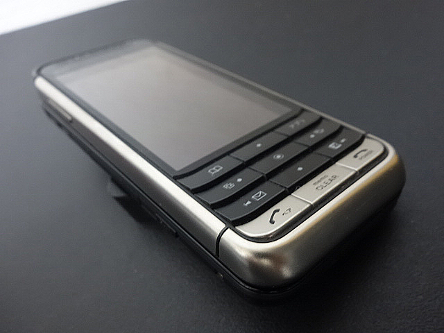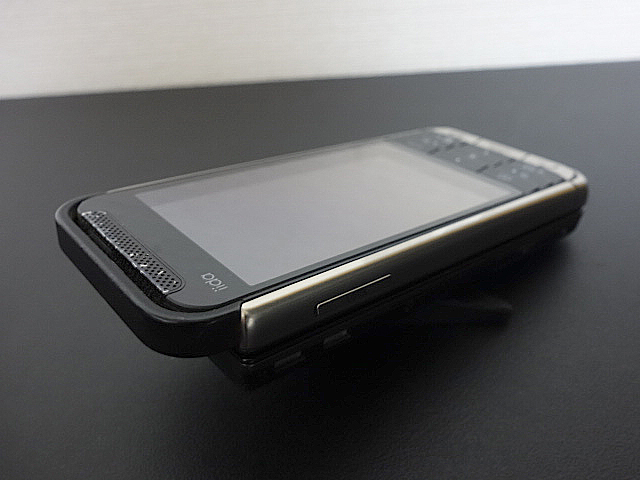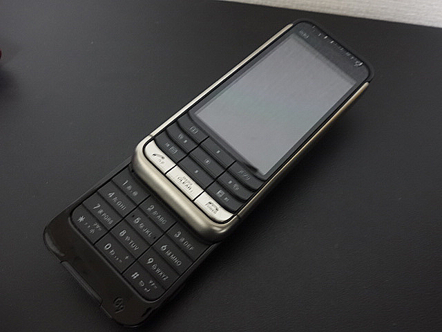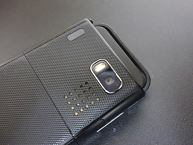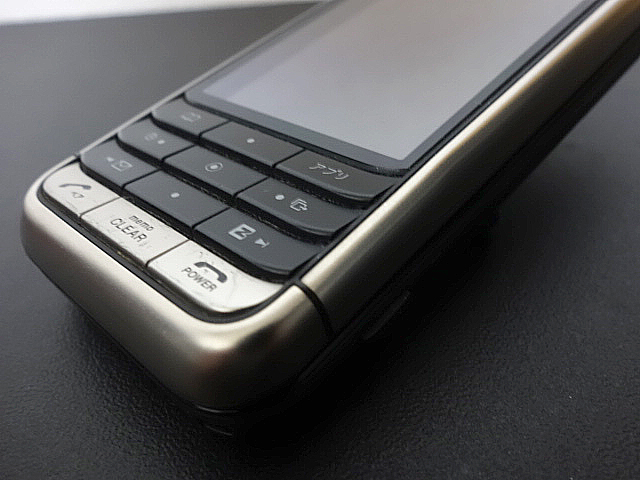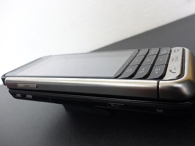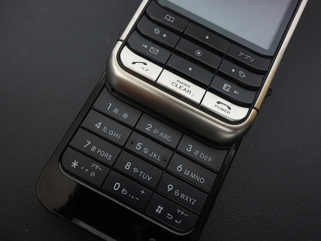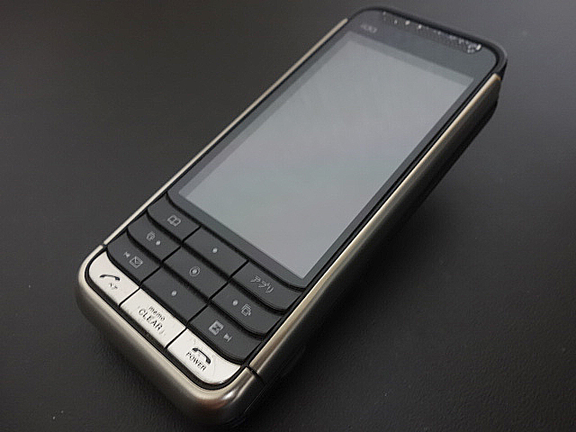 本機はワンセグにも対応したスライド型端末でステンレスフレームにチタン合金をコーティングした筐体はベース機のS001 とは思えない高級感があり、スライドレールが見えない細部にこだわりも感じる構造でした。