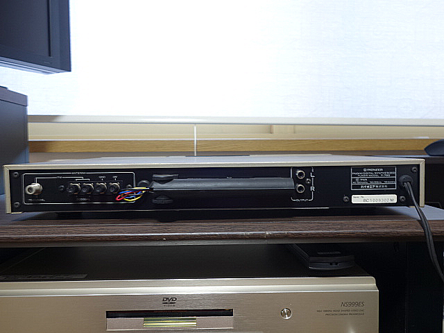 背部です。FM アンテナ入力は F 端子なので、雑音電波が混入く、しかもケーブルTV経由なので電波障害の影響を受けず、安定した受信です。