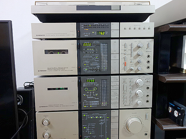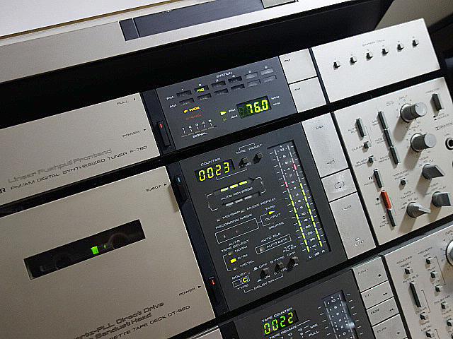 久しぶりに80年代のデジタルチューナーを持ち出してきました。本格的なFM-チューナーは親から買ってもらったのが初めてでした。このチューナーも最近起動確認したところ不具合が見つかり修理中です。その後80年代のPIONEER製品を購入し、以前紹介したカセットデッキ(CT-970)とおなじデザインだったので後に購入したものです。