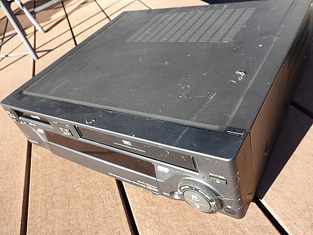 外でしたが内部を開けてみました。かなりの埃でしたがエアダスターで除去しVHS側にはテープが入っていてヘッドに巻き付いた状態でした。