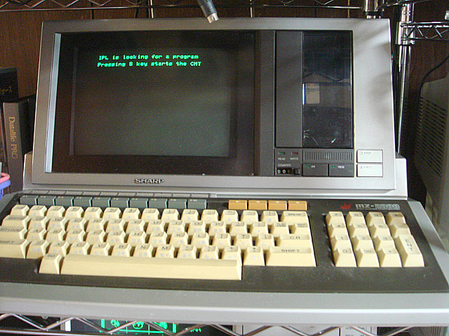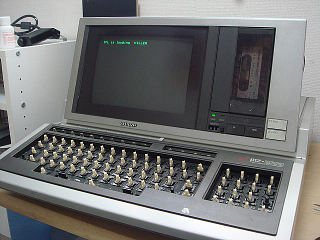MZ-2000です。この機種は予備機も含め2台保管してあります。メイン、予備機とも完動品で予備機は以前カセットデッキのベルトが切れて、当時は輪ゴムで代用した記録がある機種でした。